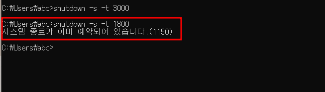 시스템 종료가 이미 예약되어 있습니다.