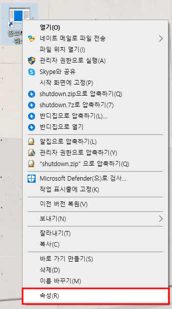3. 컴퓨터 종료예약 해제 아이콘 변경하는 방법